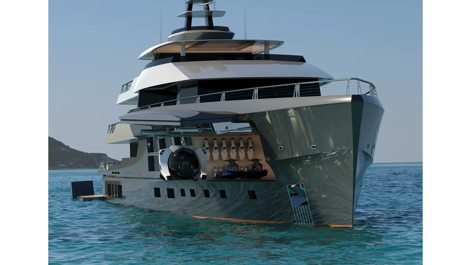 Expanding on the success of the 45m Big Fish, PROJECT METAVERSE features some amazing features that set her apart from other designs: large open beach club with multiple bathing platforms, crows nest viewing deck, glass bottom pool, tender garage forward, and a private full beam owner's suite complete with balconies on both the port & starboard sides one with a spa pool.